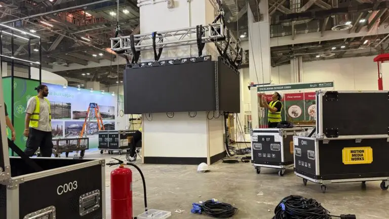 Rigged and Suspended LED wall for Tradeshows