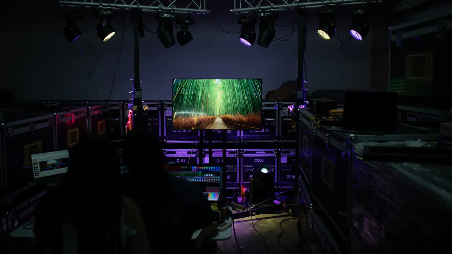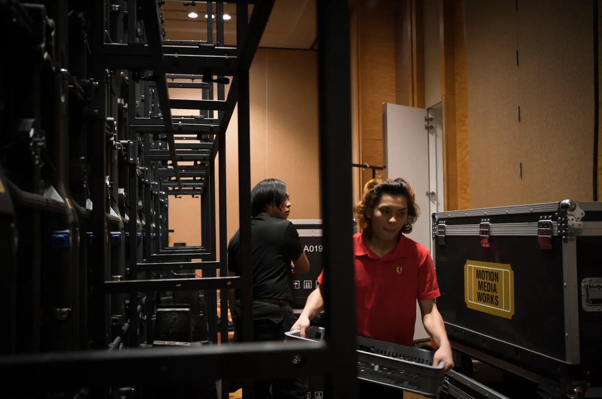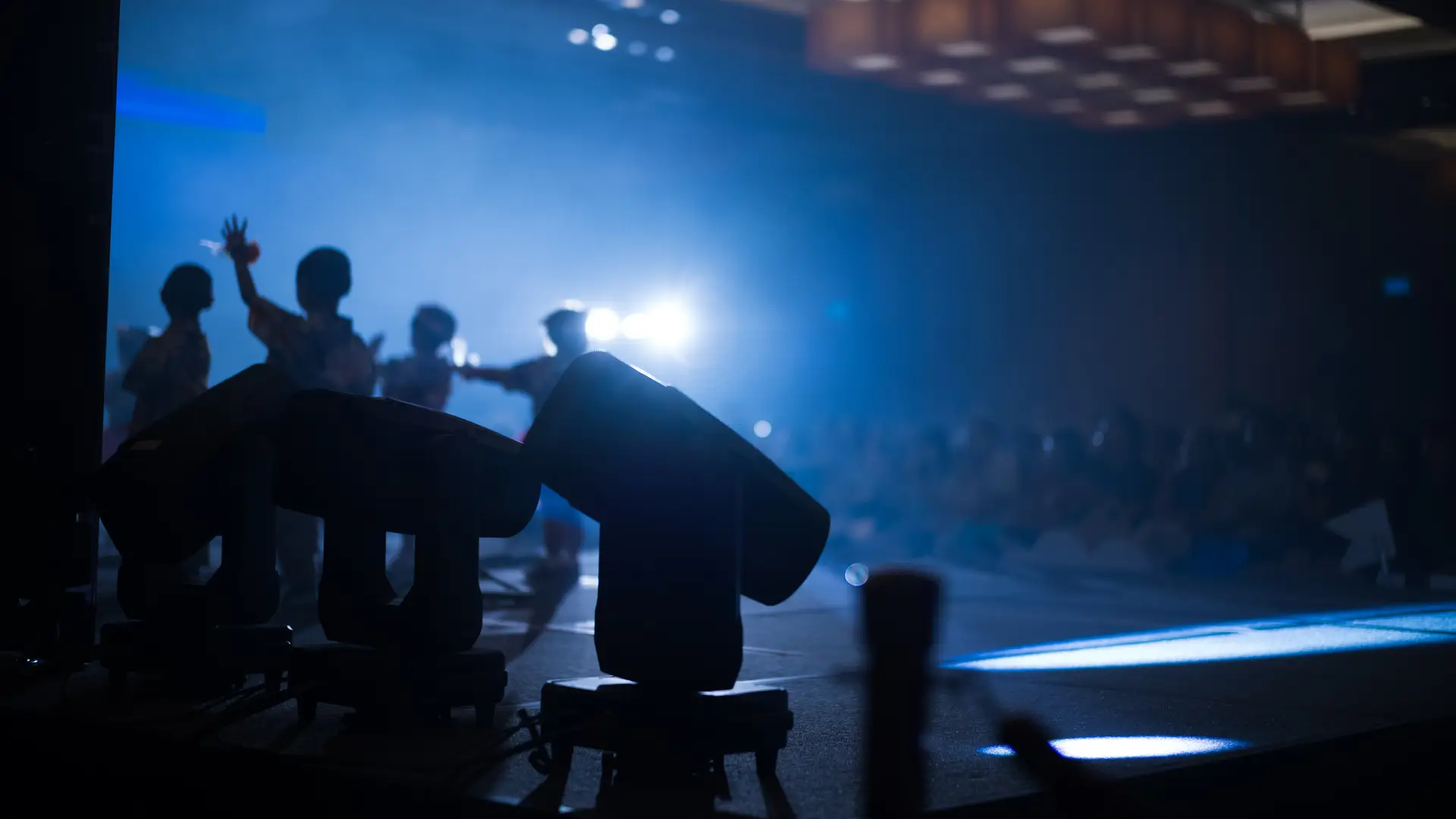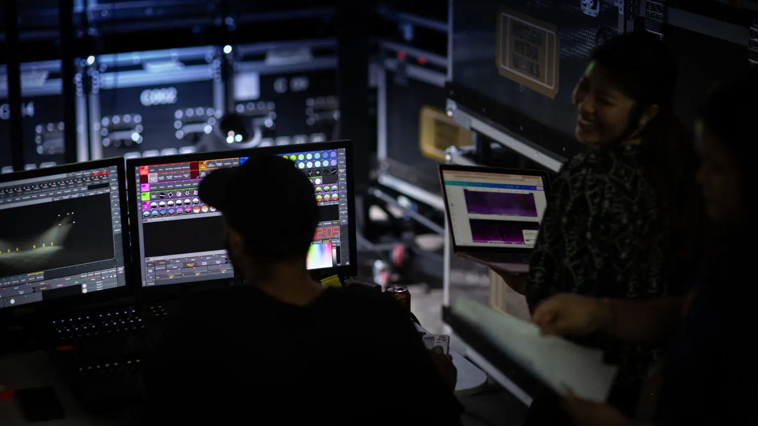 Hours before doors opened, the team was already deep in their rhythm: truss in the air, fixtures being coaxed into alignment, someone calling out positions for the moving head beams, another person quietly adjusting Fresnels to soften the stage.