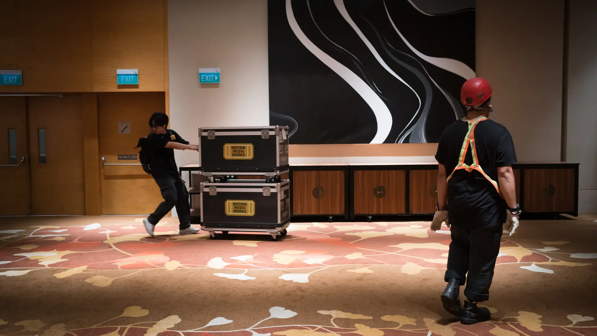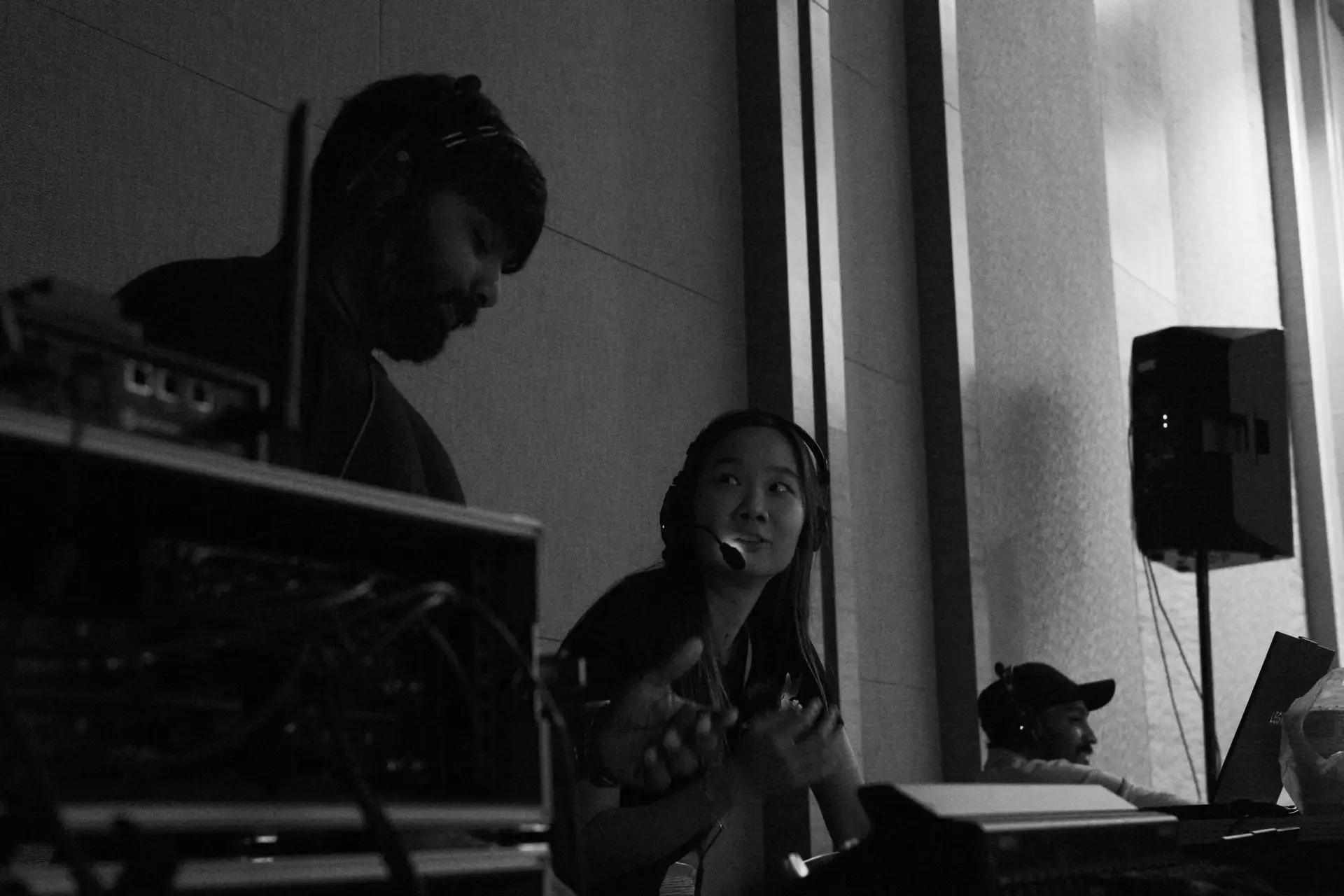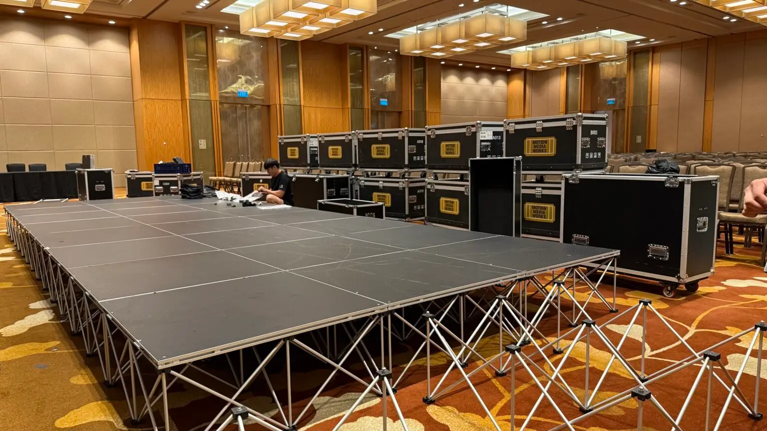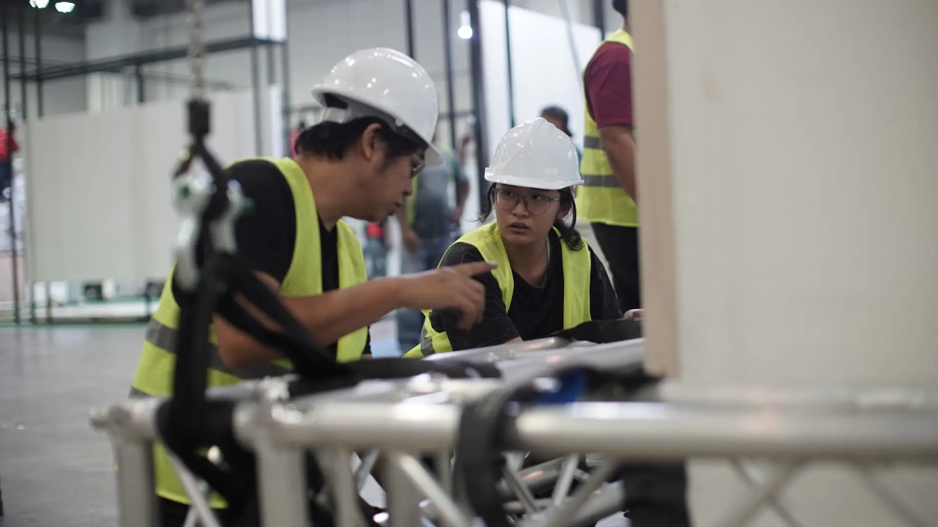 Hours before doors opened, the team was already deep in their rhythm: truss in the air, fixtures being coaxed into alignment, someone calling out positions for the moving head beams, another person quietly adjusting Fresnels to soften the stage.