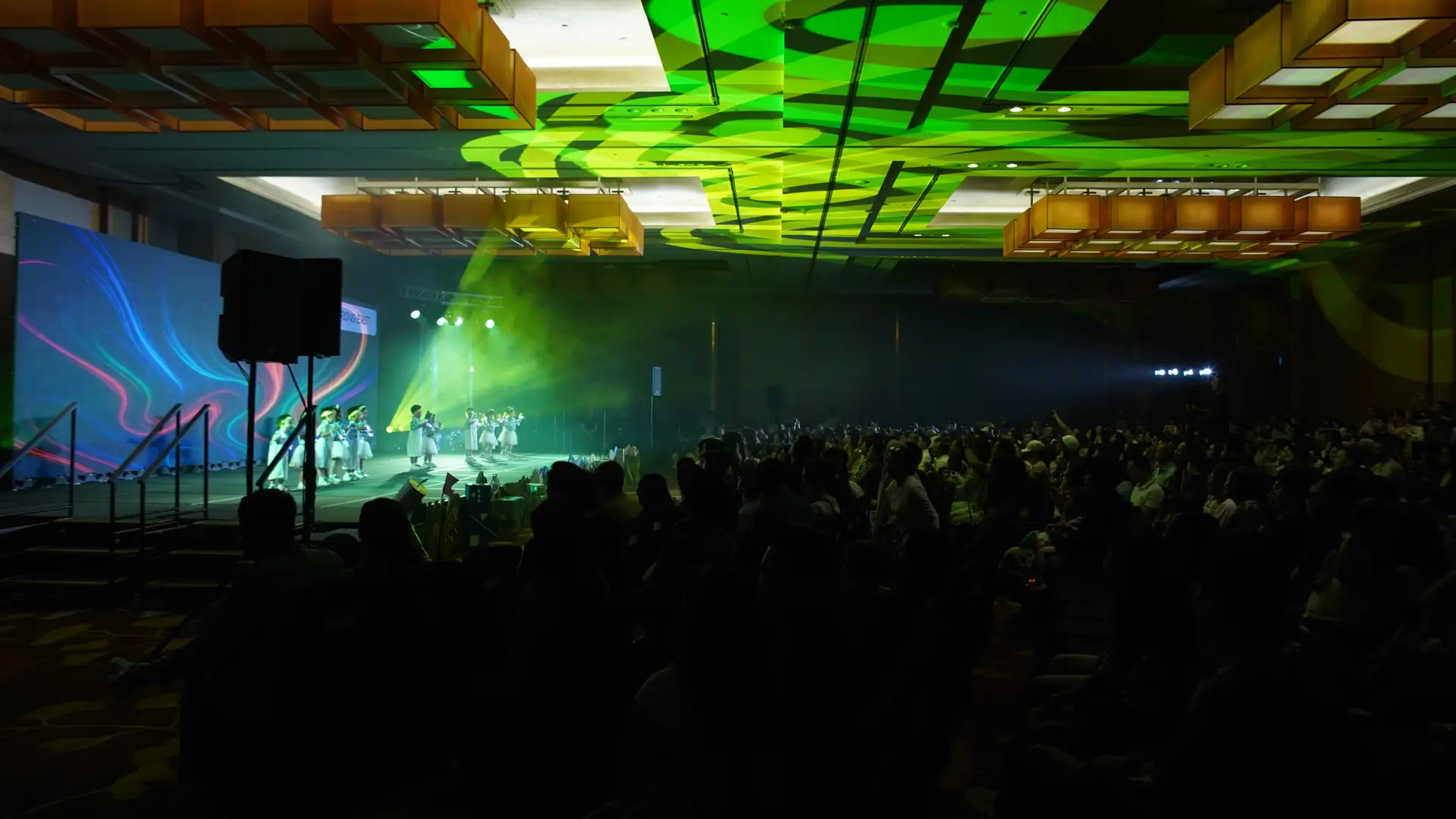The ceiling glowed, the haze caught the beams just right, and the stage felt like it belonged to a completely different world. The lighting didn’t shout — it guided. It shaped. It set a tone. You could see people look up before they even found their seats.